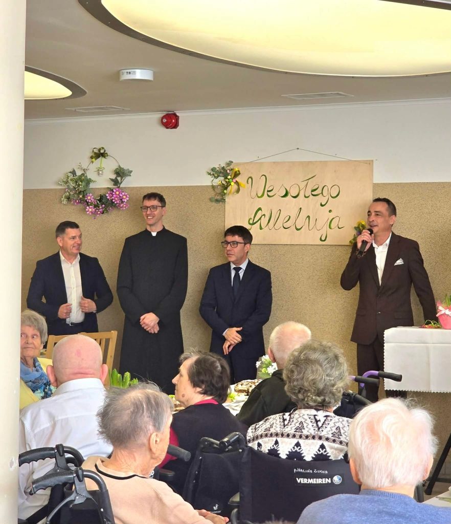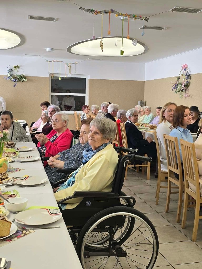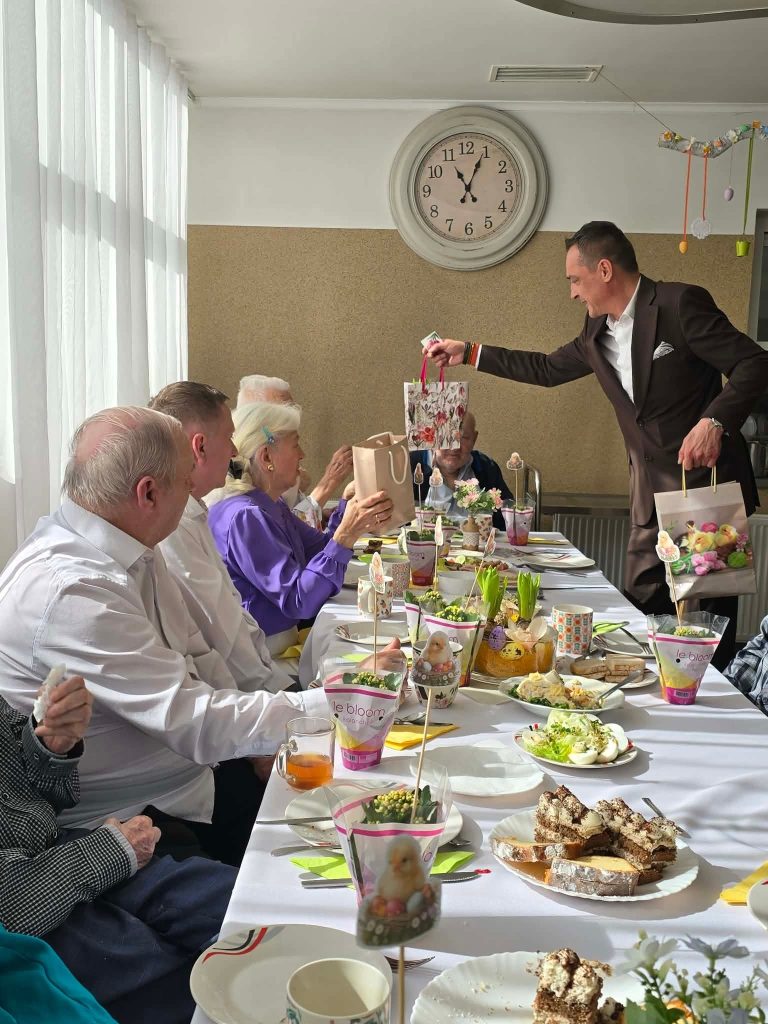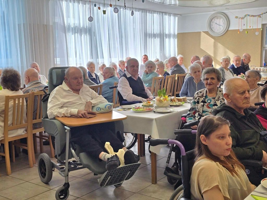 Spotkanie wielkanocne 🐣🐏 w naszym Domu odbyło się w świątecznej atmosferze, z udziałem wiceprezydenta Mateusza Podsadnego oraz przedstawicieli jednostek pomocy społecznej. Podczas spotkania nie zabrakło ciepłych życzeń i wspólnego świętowania. Oprawę muzyczną zapewnił Dominik Bochen. Na zakończenie każdy z mieszkańców otrzymał z rąk prezydenta oraz dyrektora symboliczny kwiatek 🪻, zasponsorowany przez Hurtownia Kwiatów-Kozaneccy Hurt-Detal