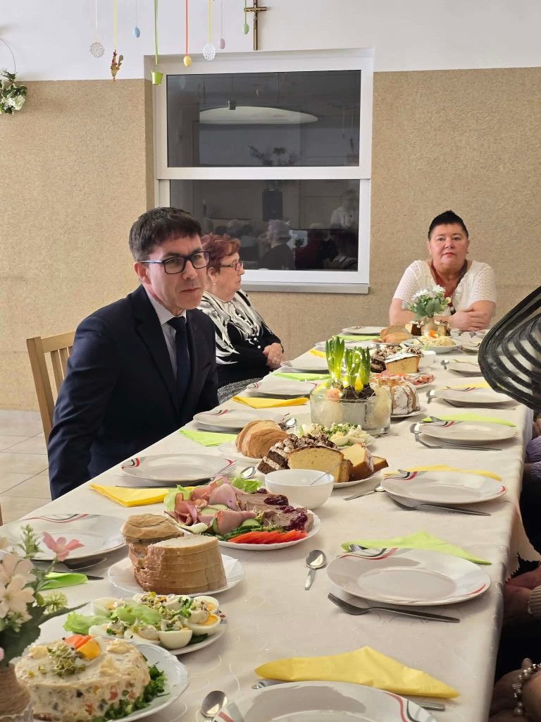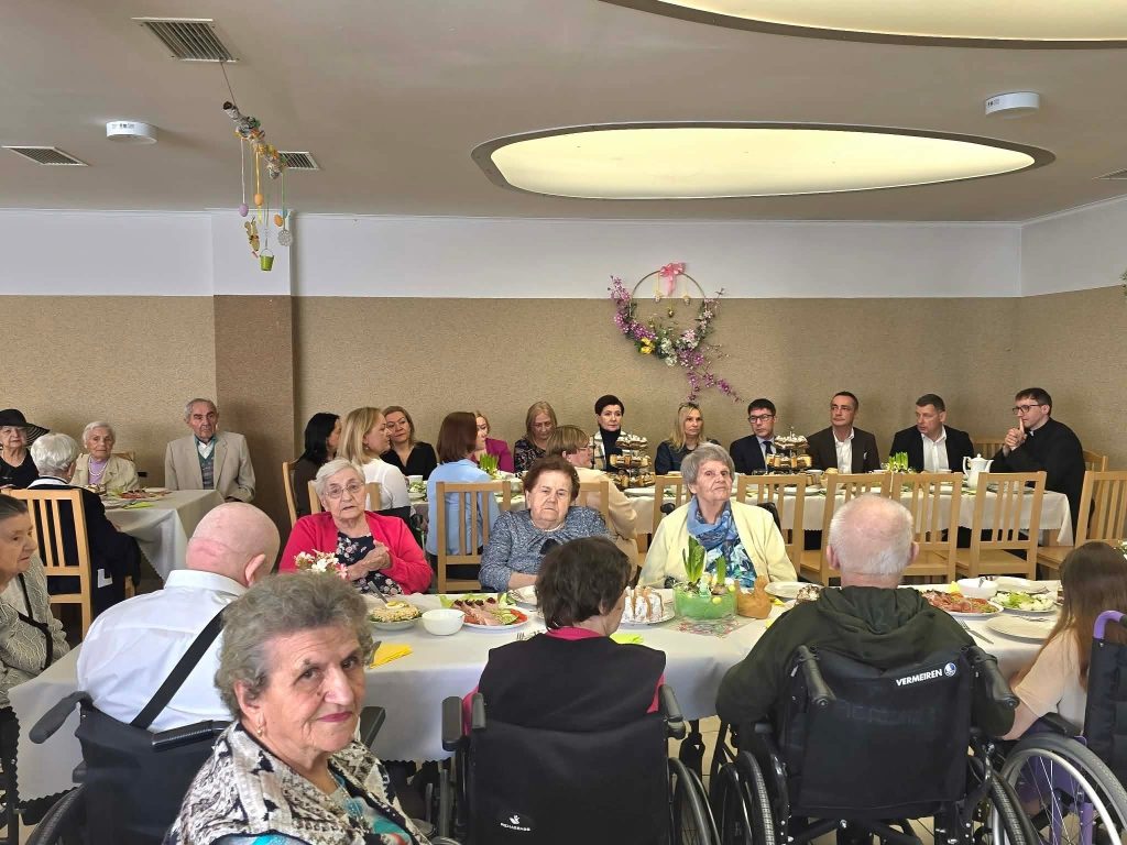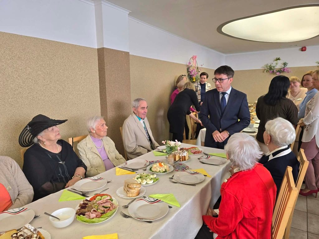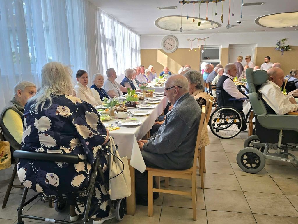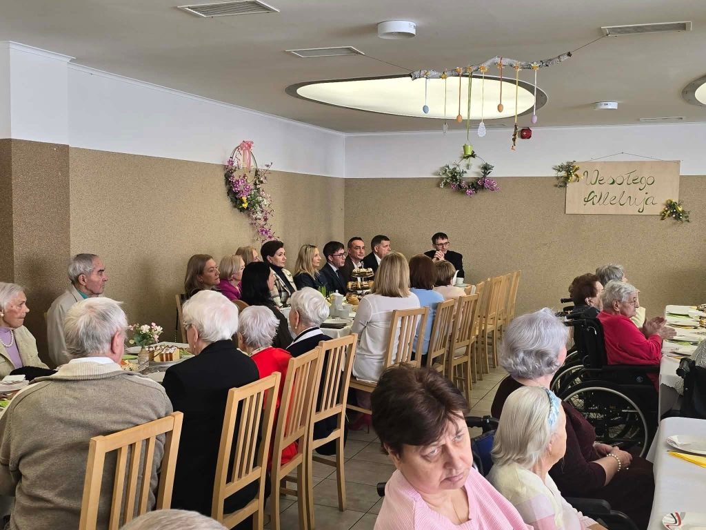 Spotkanie wielkanocne 🐣🐏 w naszym Domu odbyło się w świątecznej atmosferze, z udziałem wiceprezydenta Mateusza Podsadnego oraz przedstawicieli jednostek pomocy społecznej. Podczas spotkania nie zabrakło ciepłych życzeń i wspólnego świętowania. Oprawę muzyczną zapewnił Dominik Bochen. Na zakończenie każdy z mieszkańców otrzymał z rąk prezydenta oraz dyrektora symboliczny kwiatek 🪻, zasponsorowany przez Hurtownia Kwiatów-Kozaneccy Hurt-Detal