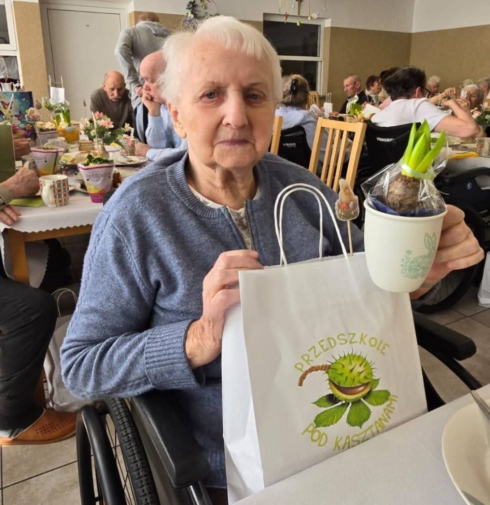 – Pani Dyrektor Oldze Gruszczyńskiej, rodzicom i dzieciom z grupy Pszczółki i Słoneczka z Przedszkola pod Kasztanami Nowe Skalmierzyce w ramach drugiej edycji akcji charytatywnej ,,Serca przedszkolaków dla seniorów” za przekazanie upominków naszym mieszkańcom